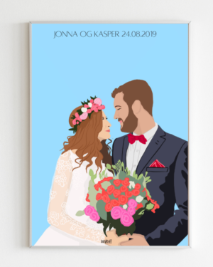Håndtegnet personlig plakat Findes der noget smukkere end jeres bryllups fotos uanset om I fik holdt lille eller stor bryllup. Kjolens detaljer, blomster, stedet, gommens fine jakkesæt og ikke mindst det smukke brudepar. Bryllupsplakater er nogen af de flotteste vi får tegnet netop fordi der er så mange fine detaljer og ikke mindst pga. den…